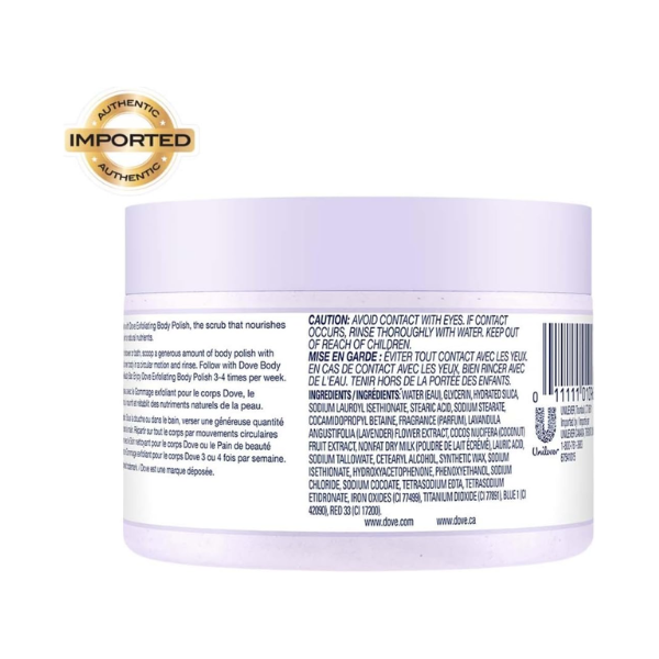 Specification: مقشر للبشرة من دوف باللافندر وجوز الهند | 298جرام